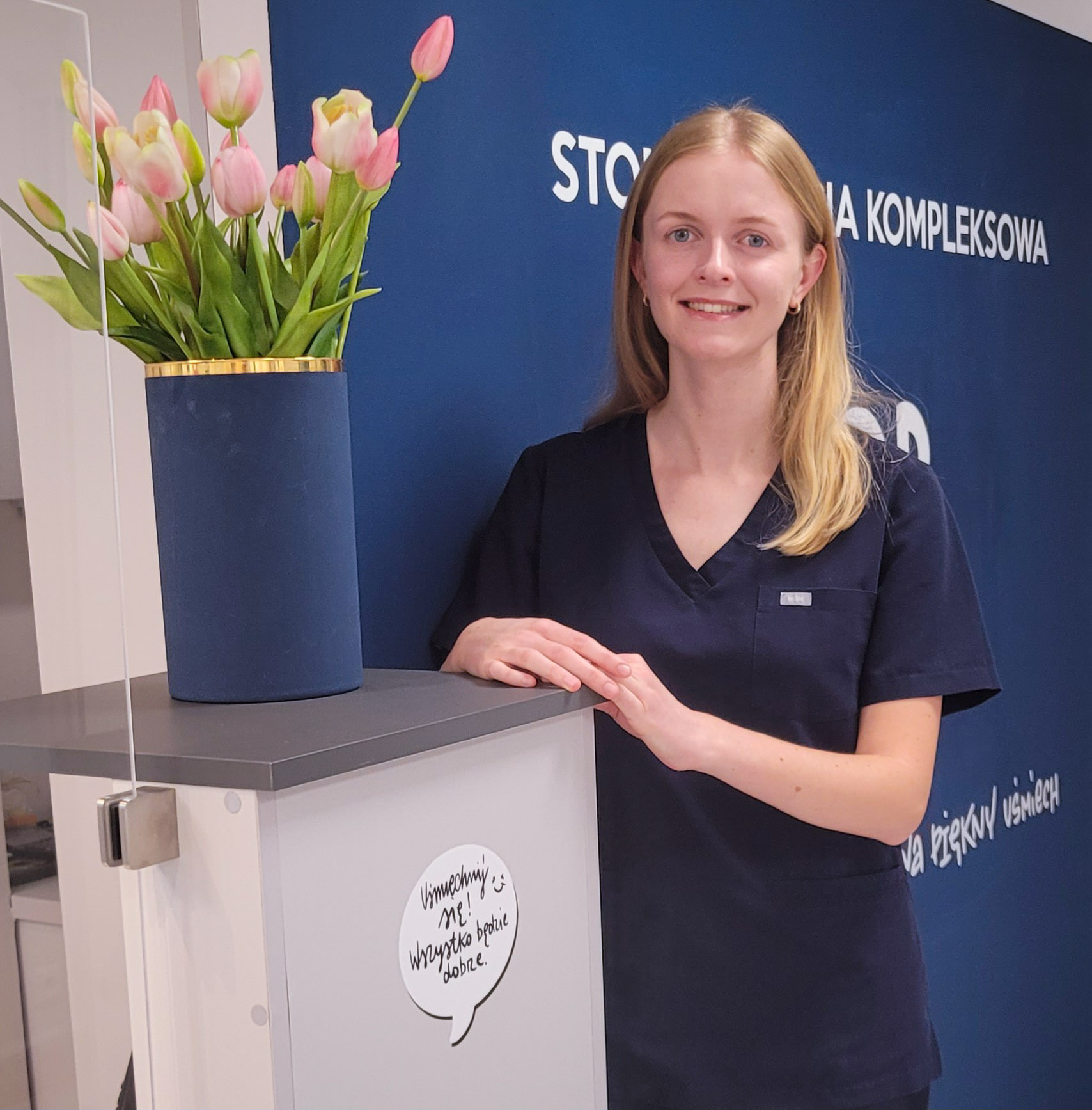 Jest lekarzem dentystą, który wierzy, że kluczem do skutecznego leczenia jest dobra relacja z pacjentem oparta na zaufaniu i zrozumieniu. W pracy szczególny nacisk kładzie na komunikację – zależy jej, aby każdy pacjent czuł się zaopiekowany , wysłuchany i spokojny na każdym etapie leczenia. Na co dzień zajmuje się przede wszystkim stomatologią zachowawczą, endodoncją oraz chirurgią stomatologiczną. Obecnie rozwija swoje umiejętności również w zakresie protetyki, by móc jeszcze lepiej odpowiadać na potrzeby swoich pacjentów. Pani Doktor prywatnie jest osobą pełną energii – uwielbia aktywnie spędzać czas, pływając, jeżdżąc na rowerze czy rolkach.