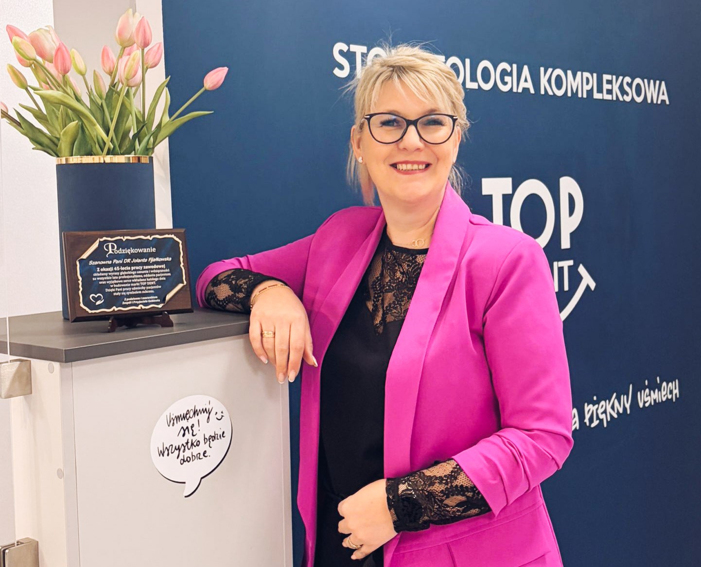 Absolwentka Wydziału Stomatologii Akademii Medycznej w Białymstoku. W zawodzie ponad 20 lat. Staż podyplomowy odbyła w TOP-DENT z którym związała swoją karierę zawodową. Na licznych kursach i szkoleniach rozwinęła dodatkowe umiejętności i stale poszerza swoją wiedzę. Jej pasją jest protetyka i stomatologia zachowawcza. Jest bardzo lubiana przez pacjentów dzięki swojej empatii i profesjonalizmowi. Podczas wizyt dba o przyjazną atmosferę i komfort przyjmowanego pacjenta.